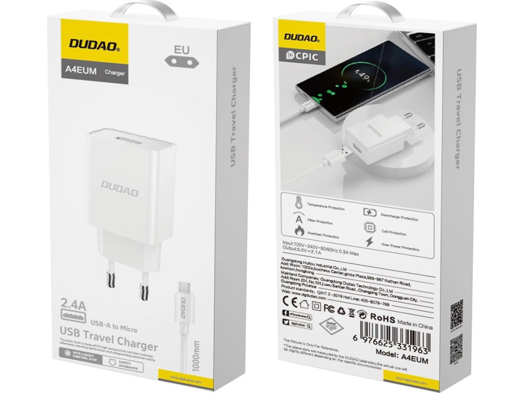 Nejdůležitější výhody nabíječky Dudao A4EU USB-A 2,1A do zásuvky: