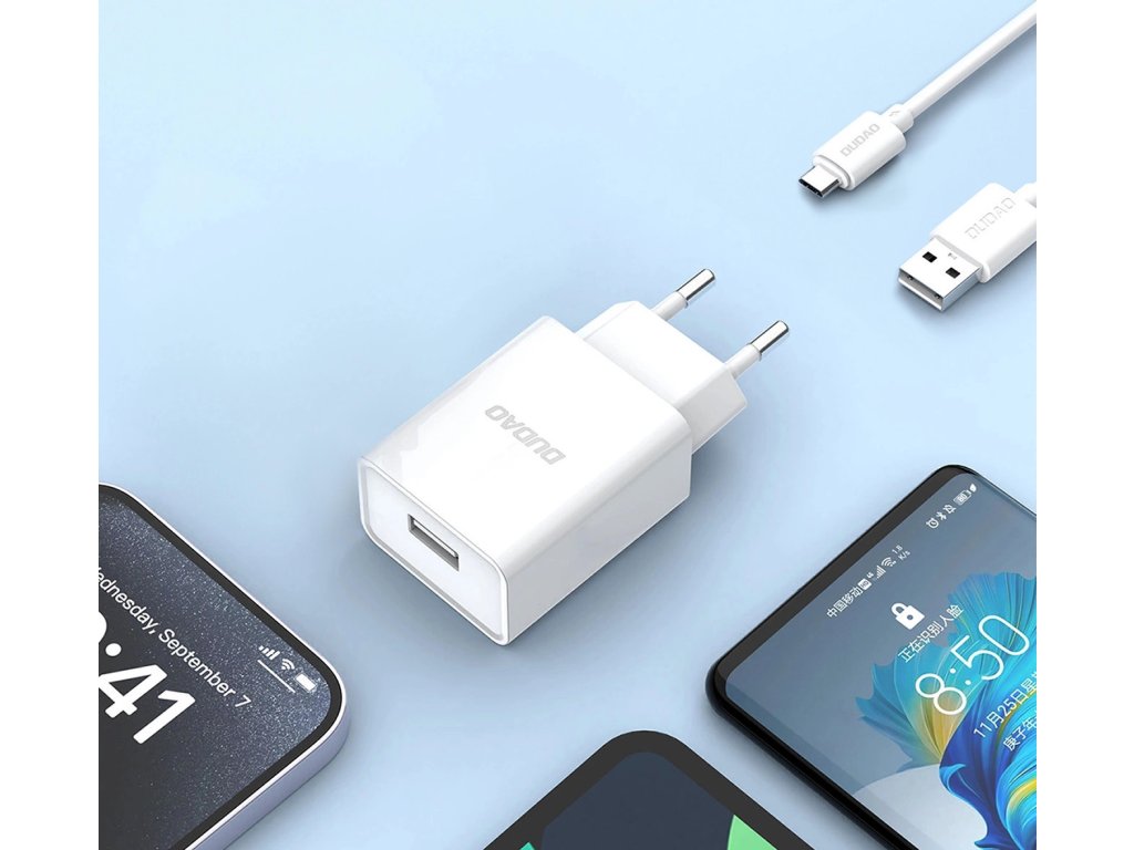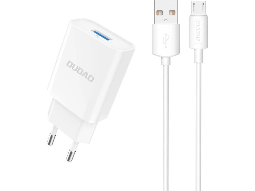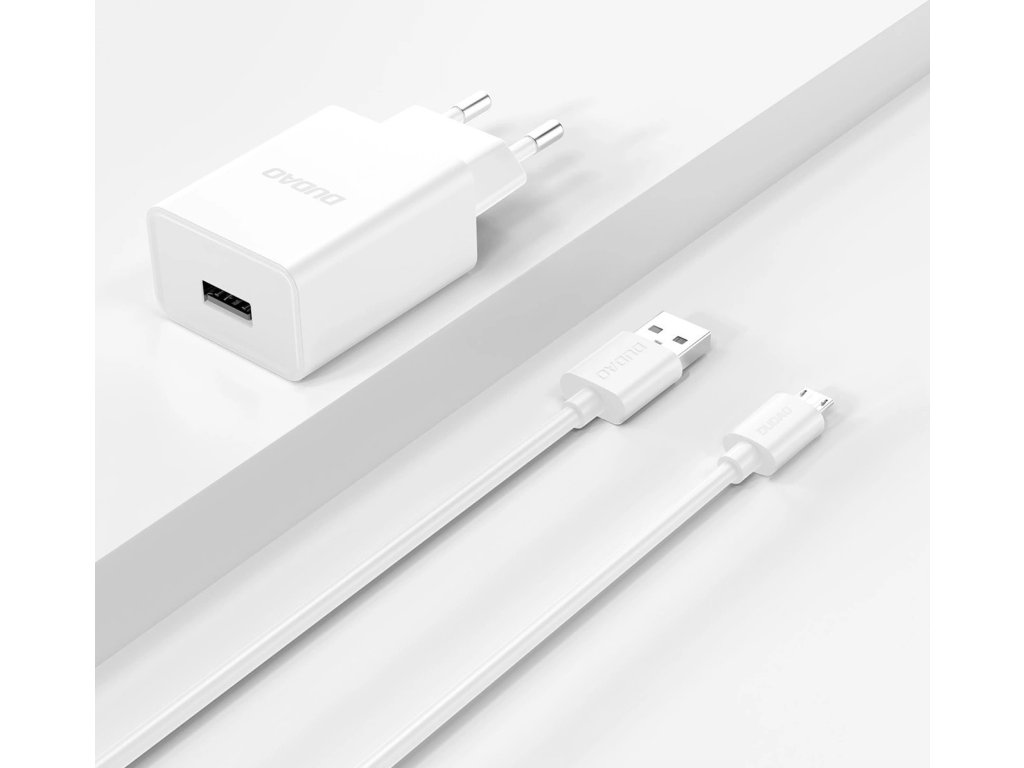 Dudao A4EU USB-A 2.1A síťová nabíječka - bílá + USB-A - micro USB kabel