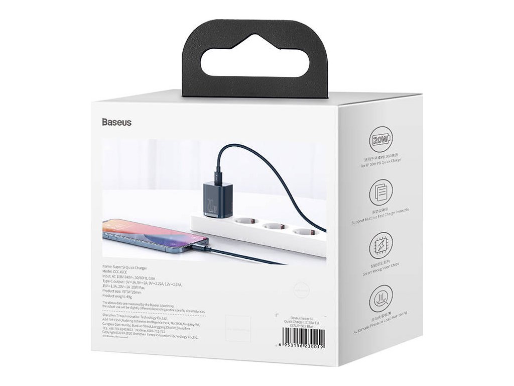 Kompaktní nabíječka Baseus CCSUP-B03 umožňuje rychlé nabíjení zařízení s výkonem až 20 W. Díky komplexnímu ochrannému systému chrání napájené zařízení před poškozením. Vyznačuje se kompatibilitou s širokou škálou chytrých telefonů a tabletů a díky rozsahu střídavého napětí 100-240 V ji můžete používat téměř kdekoli na světě. Jjeí skvělé vlastnosti jdou ruku v ruce s kompaktními rozměry - snadno se vám vejde i do kapsy!