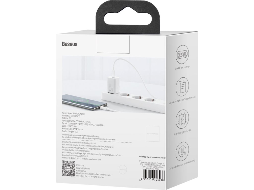 Kompaktní nabíječka Baseus CCSP020102 umožňuje rychlé nabíjení zařízení s výkonem až 25 W. Díky komplexnímu systému ochrany chrání napájené zařízení před poškozením. Podporuje řadu protokolů rychlého nabíjení. Vyniká kompatibilitou s širokou škálou chytrých telefonů a tabletů a díky rozsahu střídavého napětí 100-240 V ji můžete používat téměř kdekoli na světě. Jeho skvělé schopnosti jdou ruku v ruce s kompaktními rozměry - snadno se vám vejde i do kapsy!