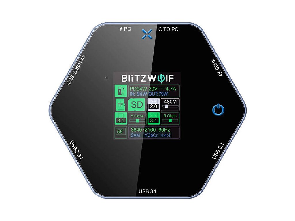Dokovací stanice Blitzwolf BW-TH16 8 v 1 USB 100W LCD s chytrým displejem