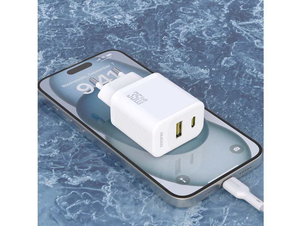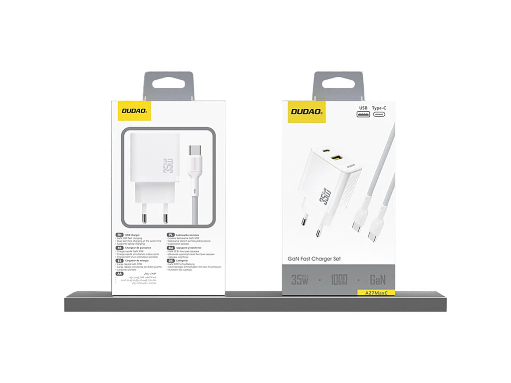 Dudao A27 MaxC je kompaktní a efektivní nástěnná nabíječka s výkonem až 35 W, která umožňuje rychlé a bezpečné nabíjení více zařízení. Je vybavena dvěma porty – USB-C a USB-A – a umožňuje tak současné připojení různých zařízení, což zvyšuje její funkčnost při každodenním používání. Součástí balení je 1metrový kabel USB-C, který podporuje rychlé nabíjení a přenos dat. Bílá barva, lehká konstrukce a kompaktní rozměry činí z nabíječky ideální nabíječku pro domácnost, kancelář i na cesty.