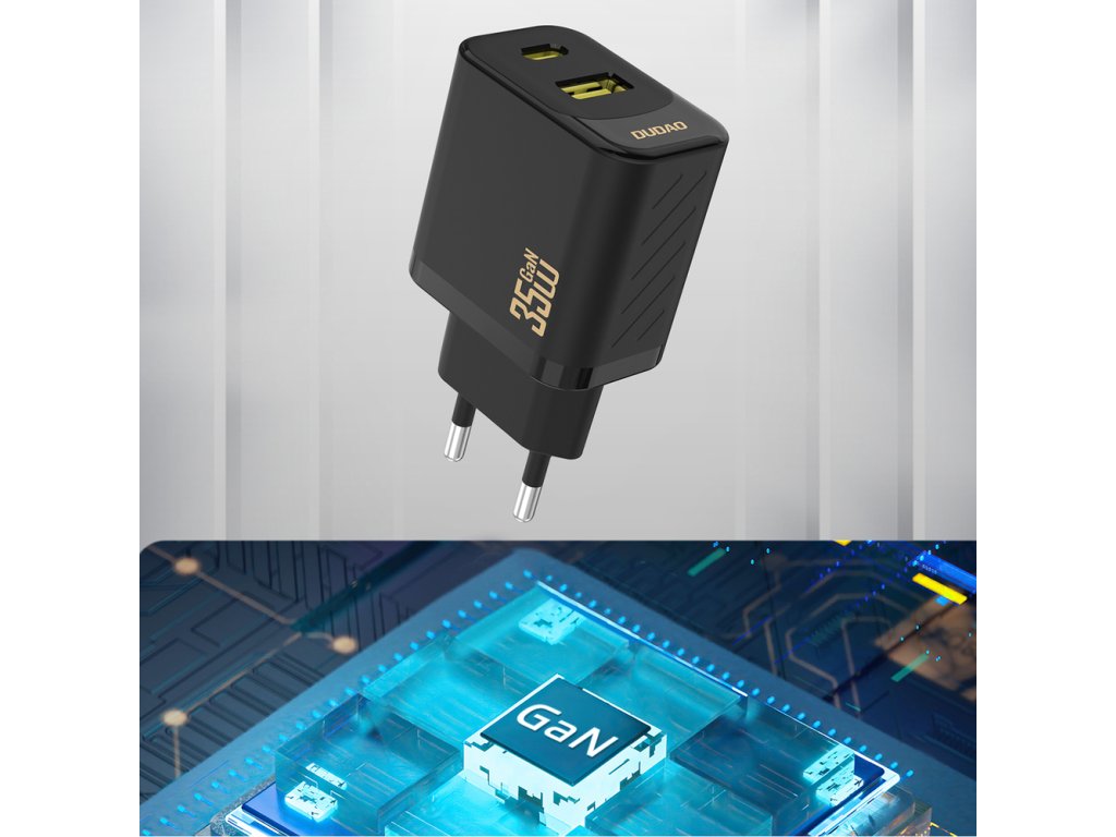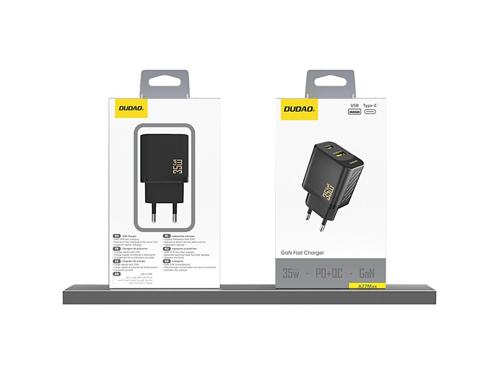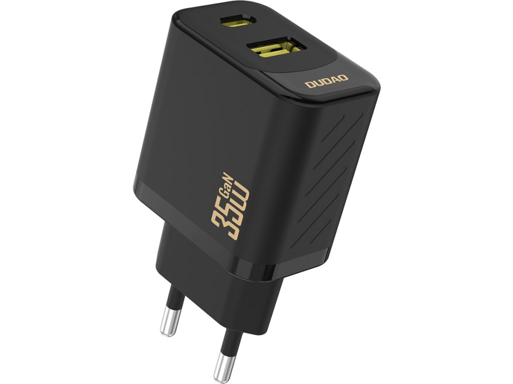 Dudao A27 MaxC je kompaktní a efektivní nástěnná nabíječka s výkonem až 35 W, která umožňuje rychlé a bezpečné nabíjení více zařízení. Je vybavena dvěma porty – USB-C a USB-A – a umožňuje tak současné připojení různých zařízení, což zvyšuje její funkčnost při každodenním používání. Součástí balení je 1metrový kabel USB-C, který podporuje rychlé nabíjení a přenos dat. Černá barva, lehká konstrukce a kompaktní rozměry činí z nabíječky ideální nabíječku pro domácnost, kancelář i na cesty.