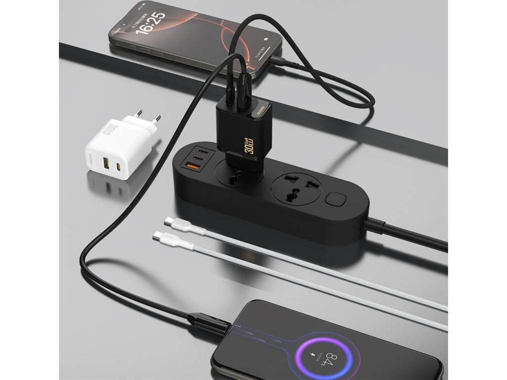- Technologie GaN: vysoká účinnost a kompaktní design.