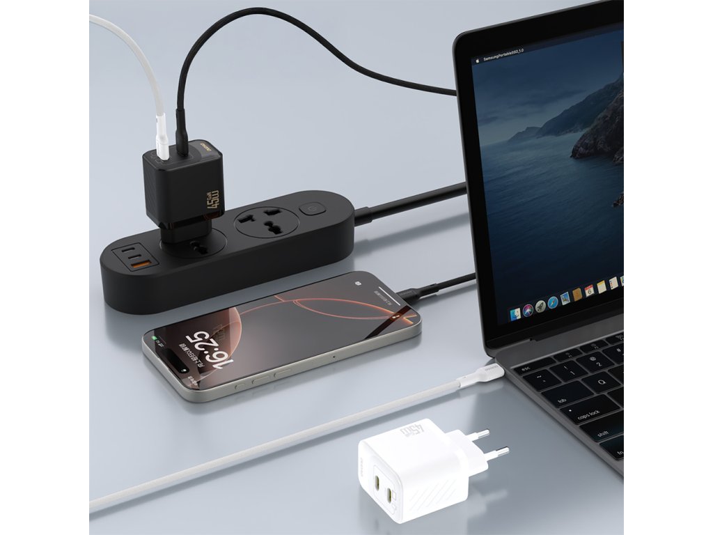 - Výkon 45 W: rychlé a efektivní nabíjení chytrých telefonů, tabletů a notebooků.