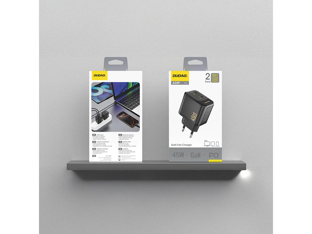 Dudao A28PEU PD 45W GaN 2xUSB nástěnná nabíječka - černá