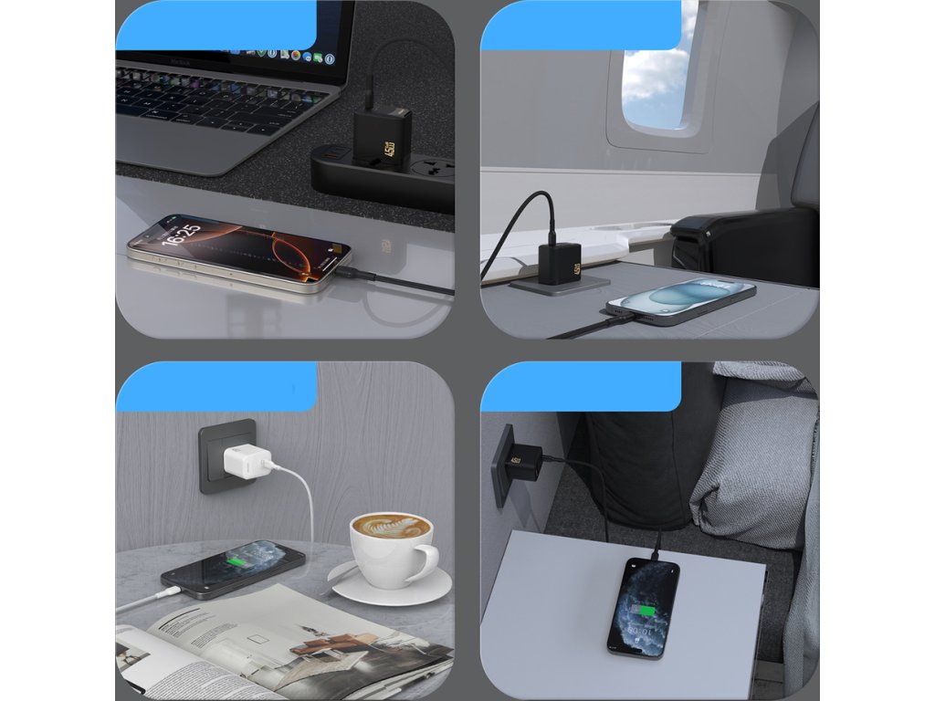 - Výkon 45 W – rychlé nabíjení telefonů, tabletů i notebooků