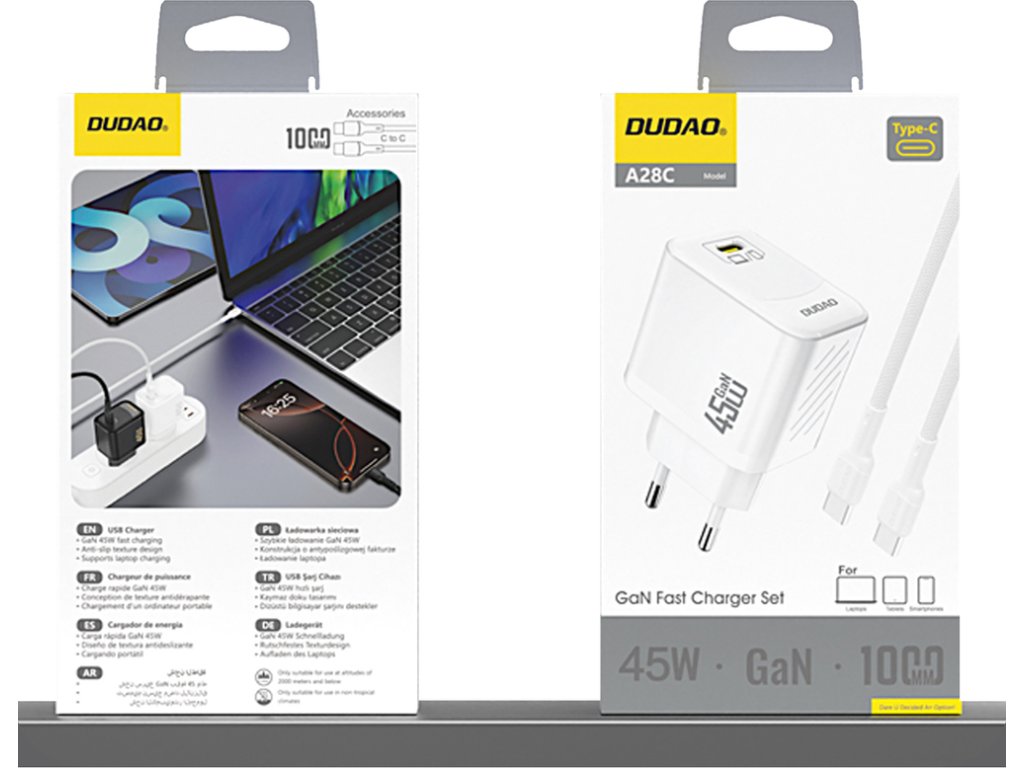 Dudao A28C je ideální volbou pro ty, kteří chtějí nabíjet rychle, efektivně a bezpečně. GaN technologie zaručuje maximální výkon v minimálním těle – skvělý společník pro váš smartphone, tablet i notebook.