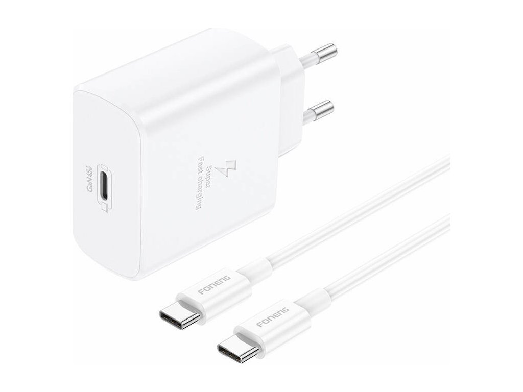 Foneng EU62 USB-C 45W síťová nabíječka + USB-C kabel (bílý)