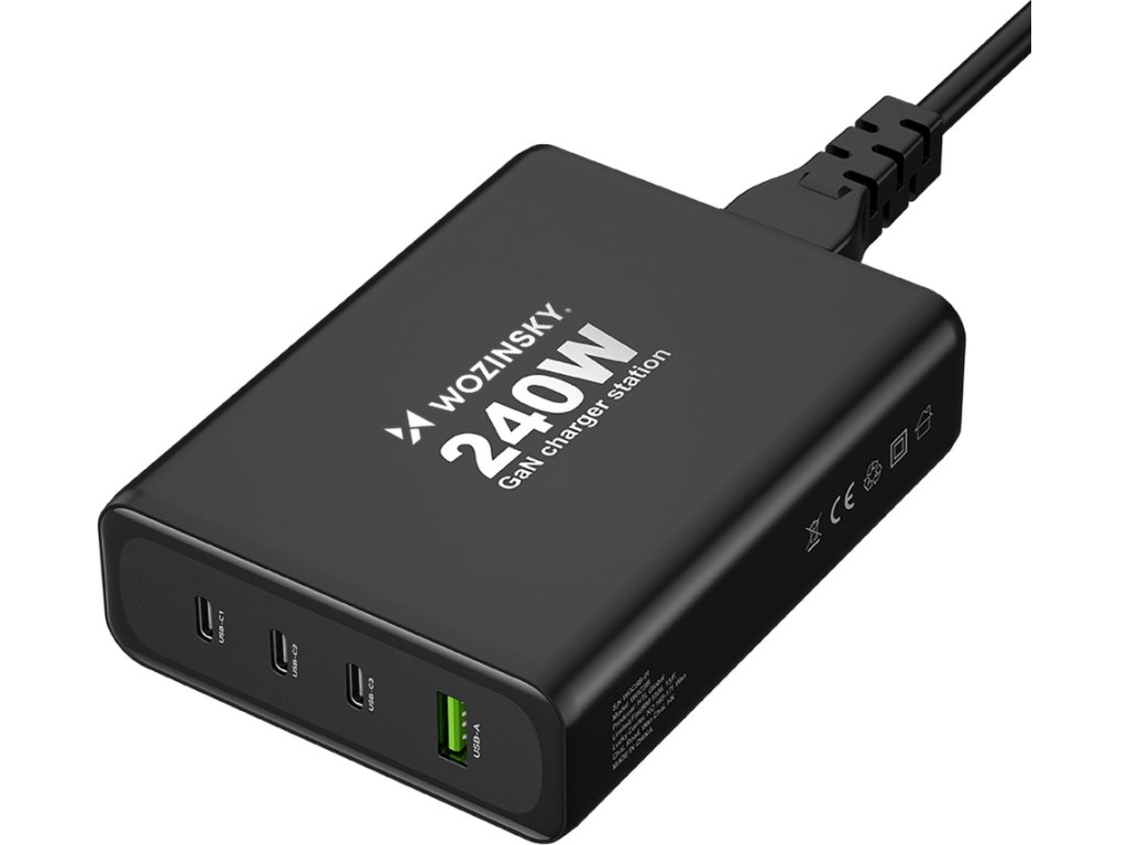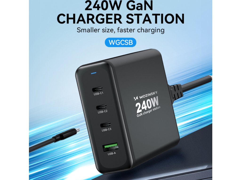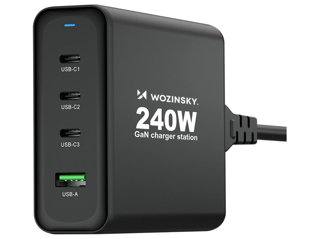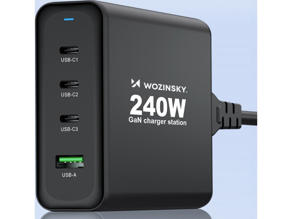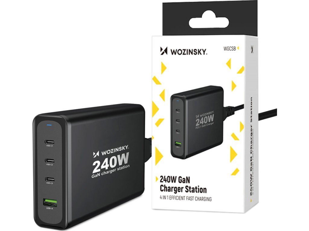 GaN Wozinsky WGCSB 240W USB-A / 3 x USB-C nástěnná nabíječka - černá