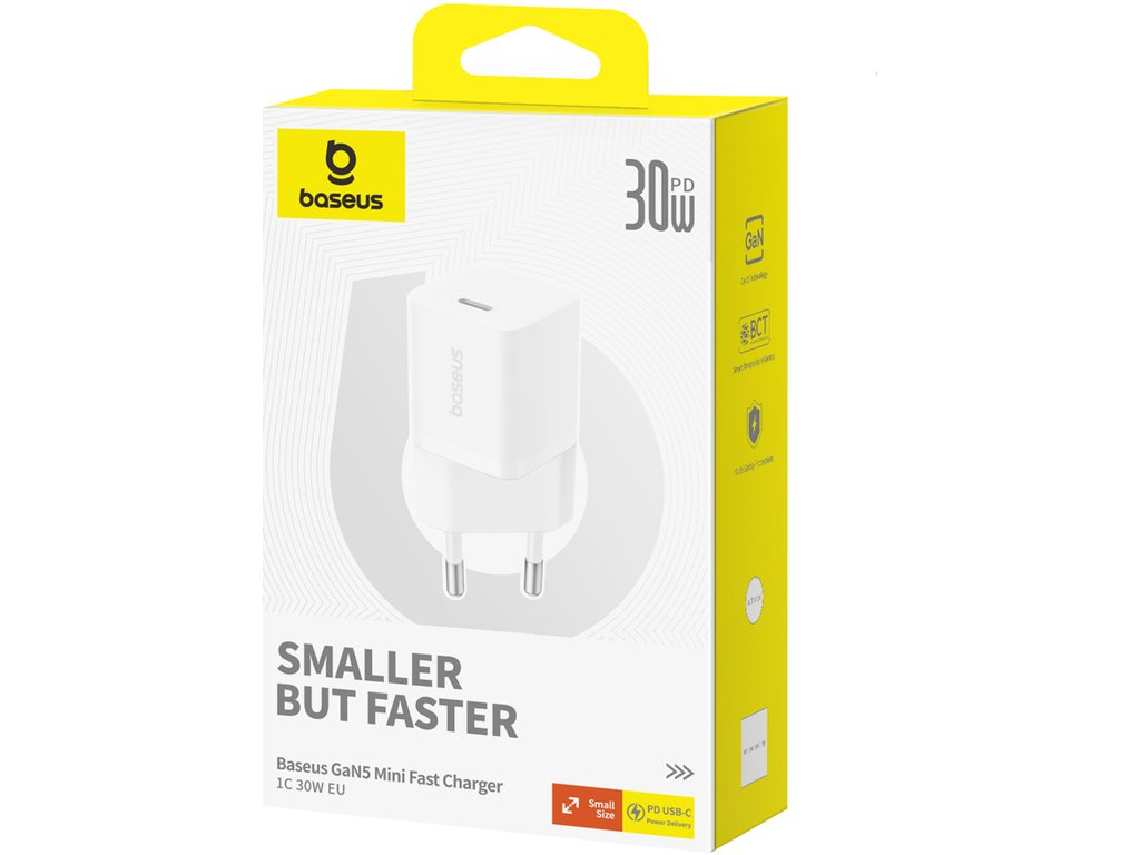 Klíčové výhody mini nabíječky Baseus GaN5 30W USB-C do zásuvky – bílé: