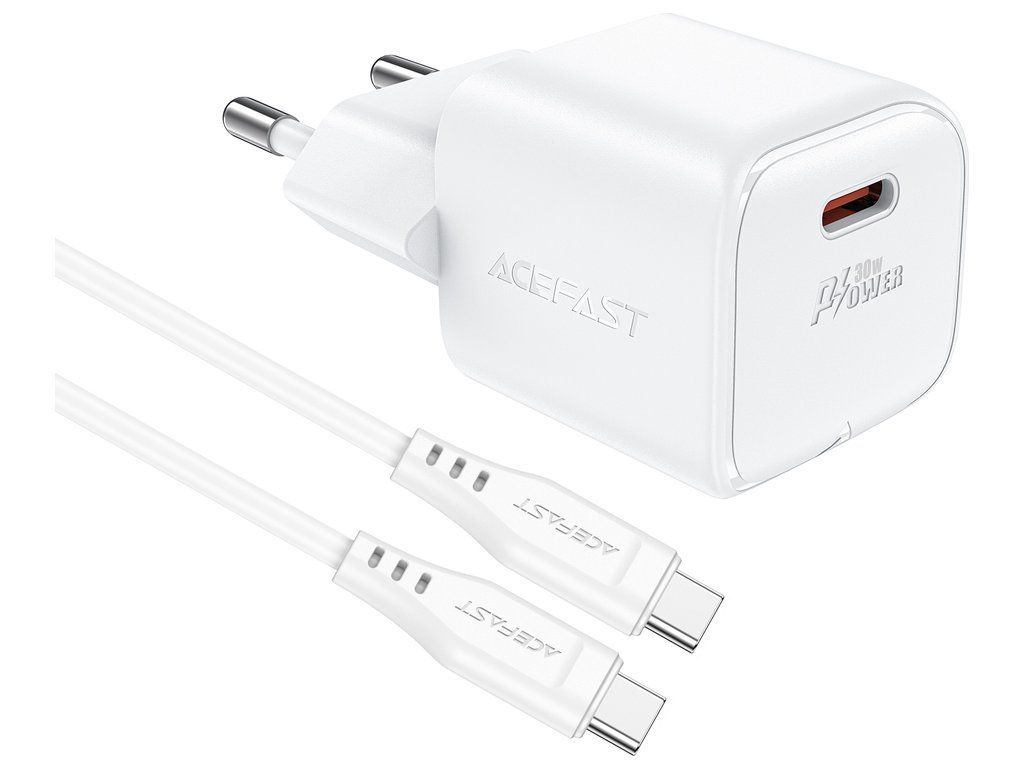 Nabíječka Acefast A77 Mini PD 30W GaN + USB-C kabel - bílá