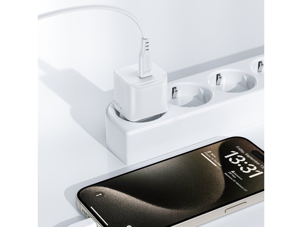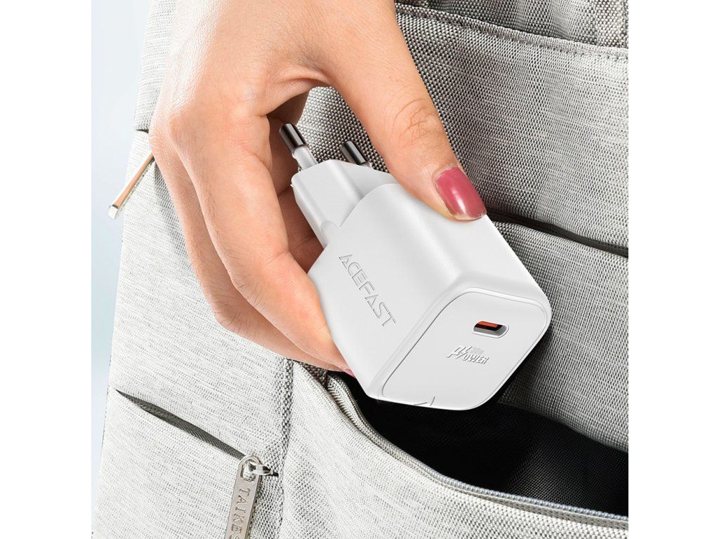 Nabíječka Acefast A77 Mini 30W GaN s technologií Power Delivery + kabel USB-C - bílá