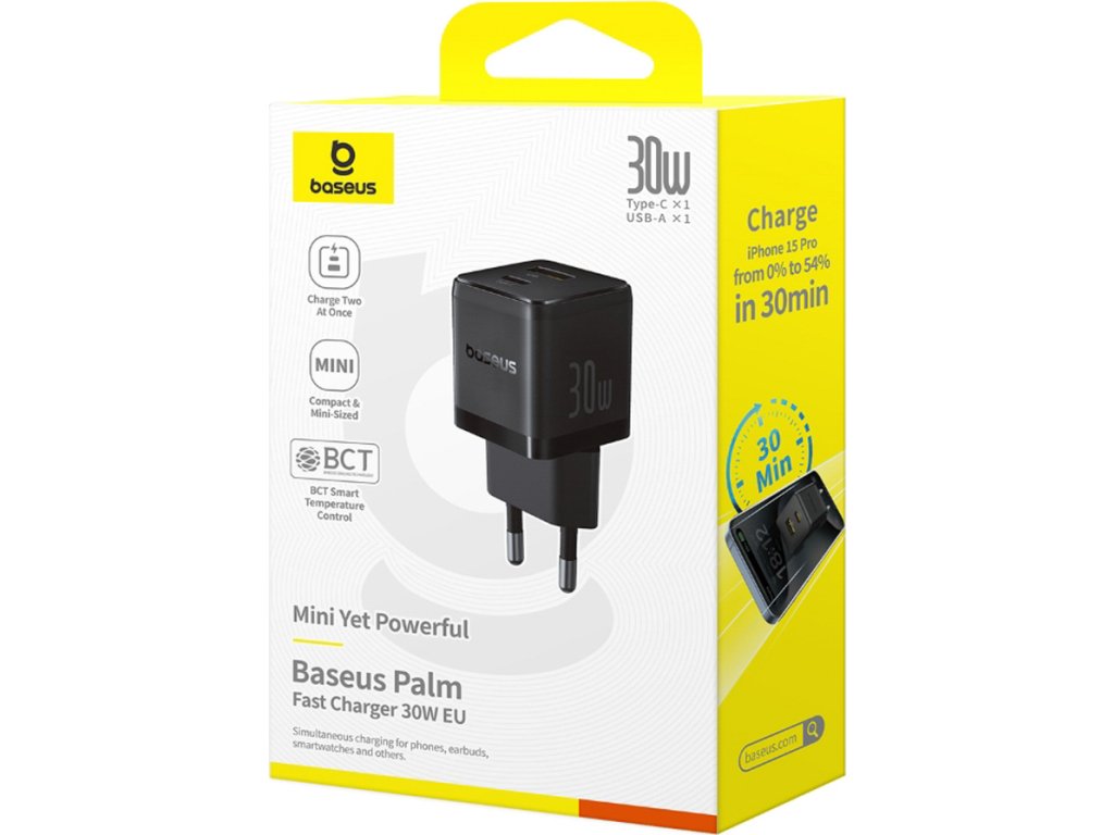 Nabíječka Baseus Palm 30W USB-C USB-A do zásuvky - černá