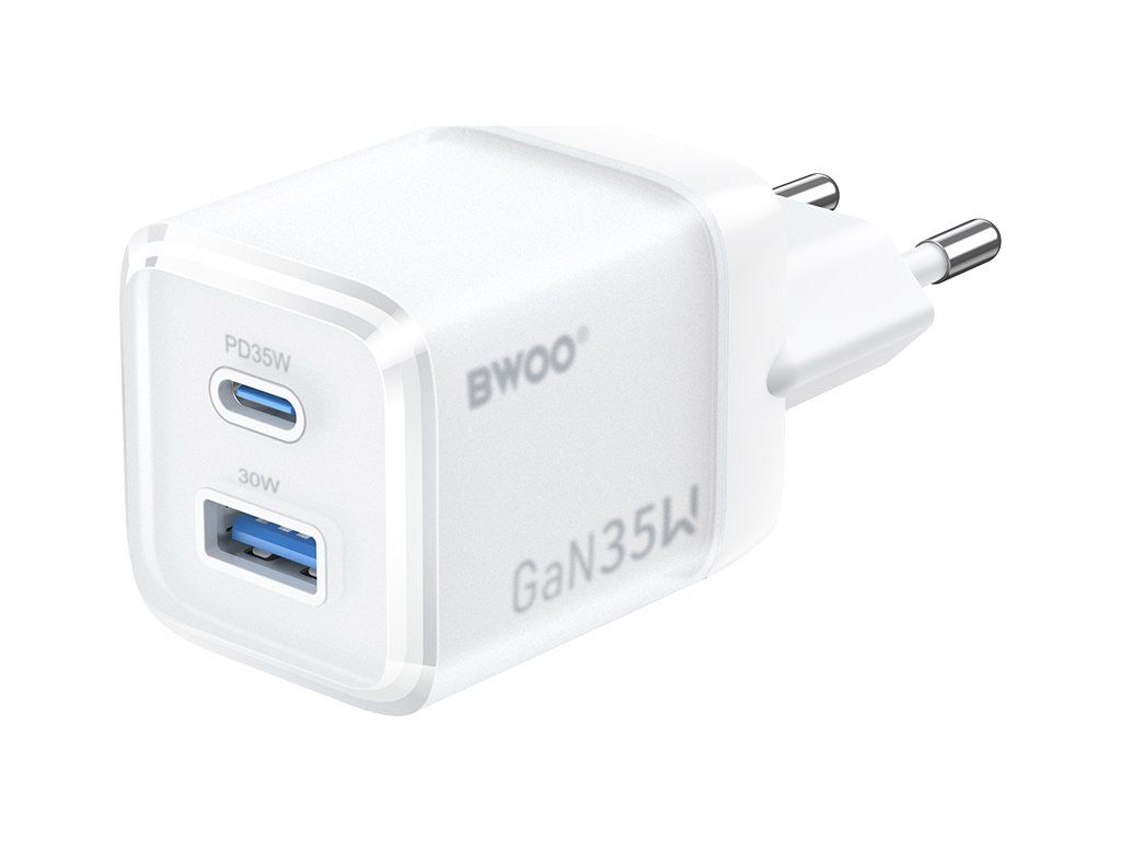 Nabíječka BWOO GaN do zásuvky CDA222 PD 35W 1 x USB 1 x USB-C, bílá