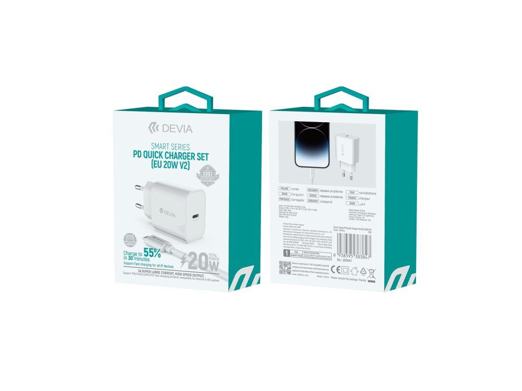 Nabíječka Devia Smart PD 20W 1x USB-C bílá + Lightning - USB-C kabel V2