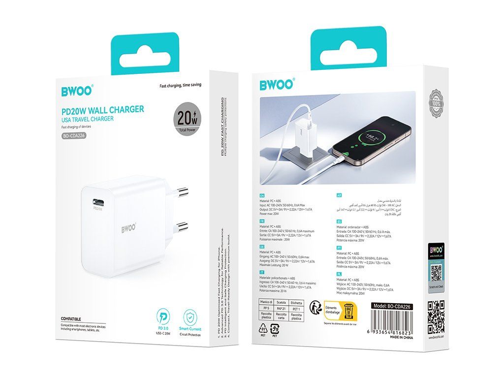 Nabíječka do zásuvky BWOO 20W CDA226 QC 1x USB-C černá
