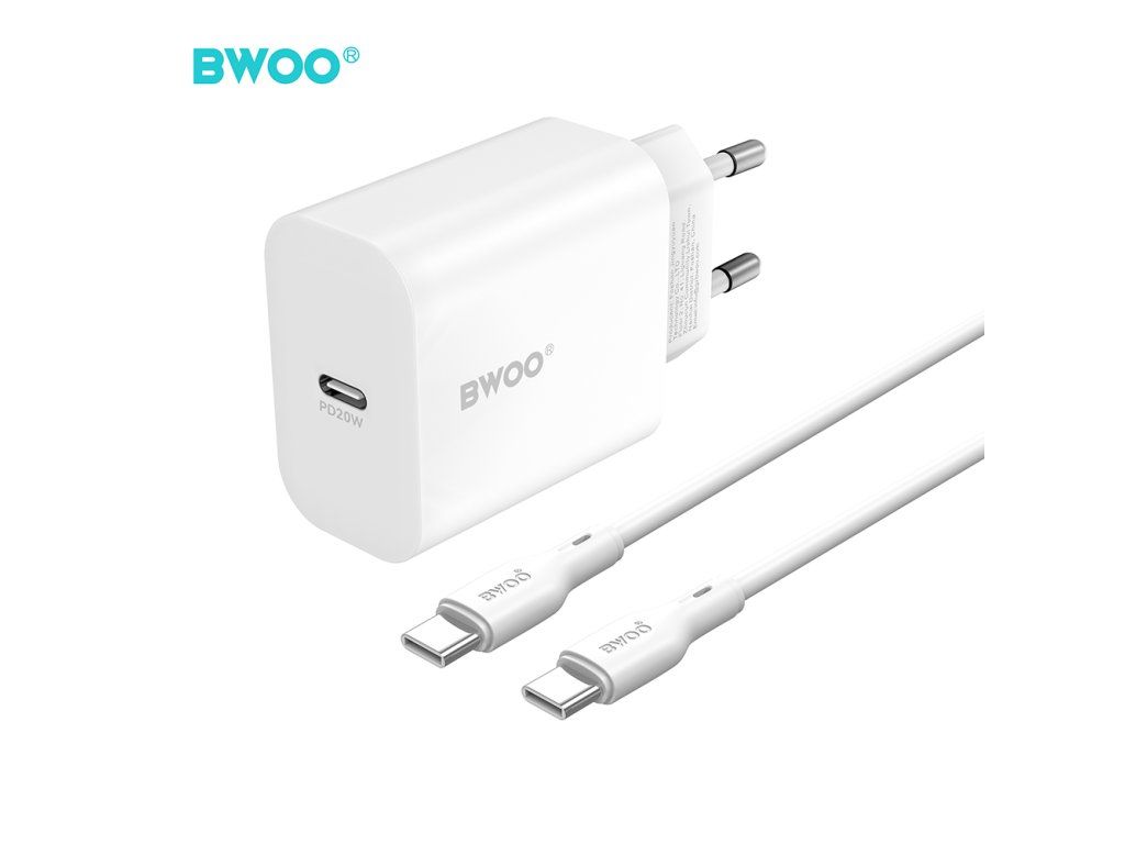 Nabíječka do zásuvky BWOO CDA233 PD 20W 1x USB-C s kabelem USB-C - USB-C bílá