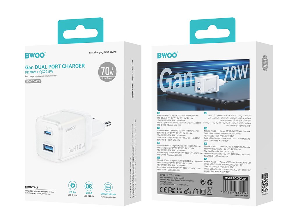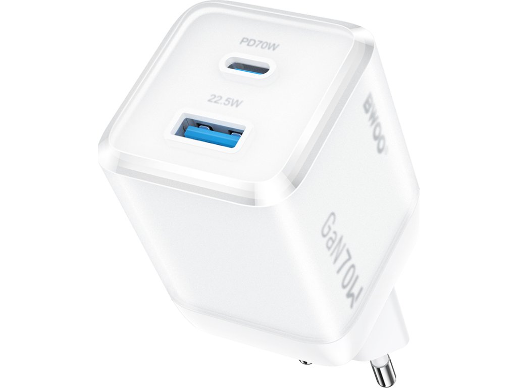 Nabíječka do zásuvky BWOO GaN CDA224 QC 70W 1 x USB 1 x USB-C, bílá