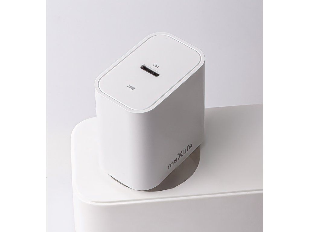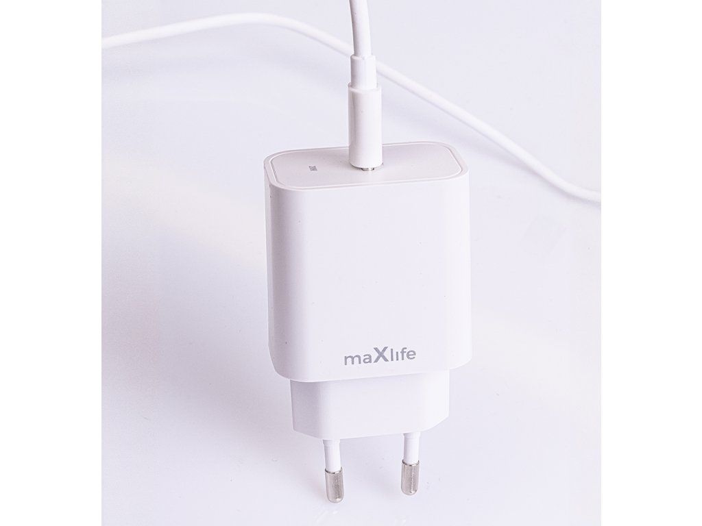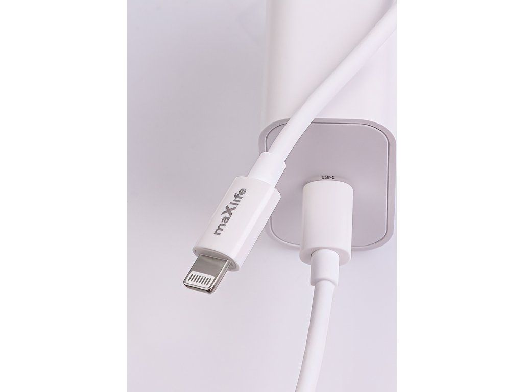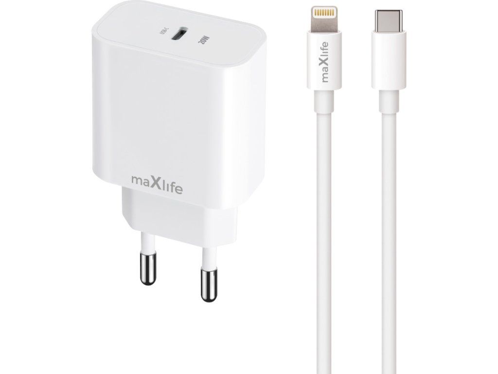 Nabíječka Maxlife MXTC-06-20C PD QC 1x USB-C 20W bílá + kabel USB-C - Lightning 20W