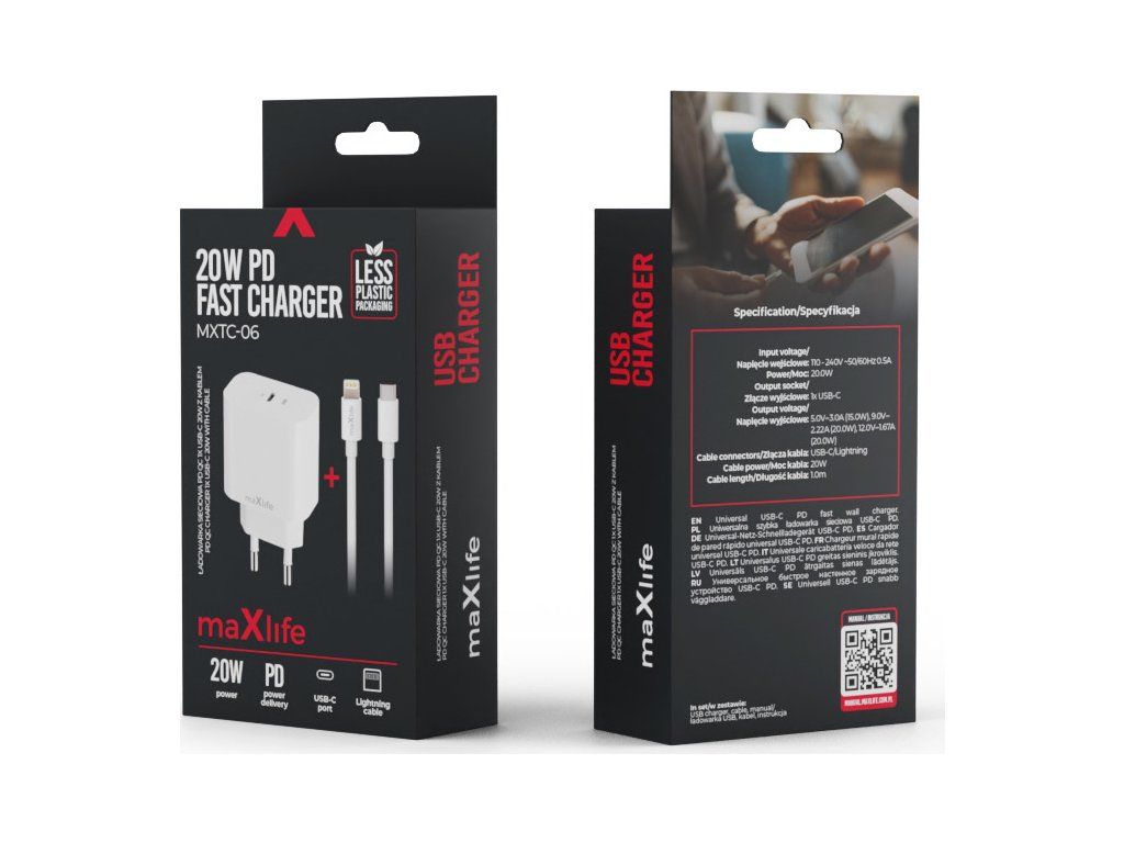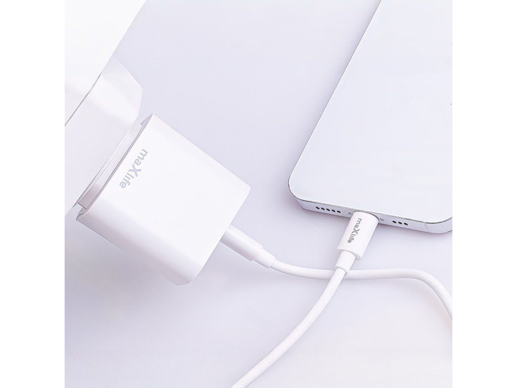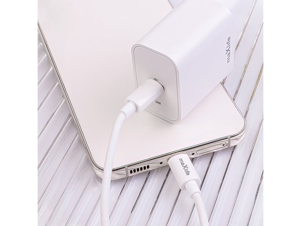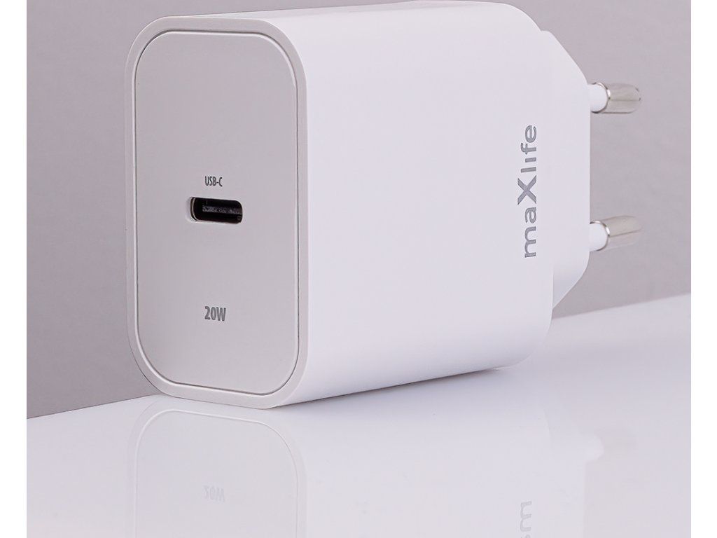 Nabíječka Maxlife MXTC-06-20C PD QC 1x USB-C 20W bílá + kabel USB-C - Lightning 20W