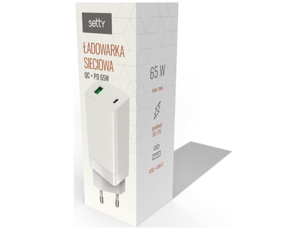 Nabíječka Setty GAN PD+QC USB + USB-C 65W LSI-02 bílá JO