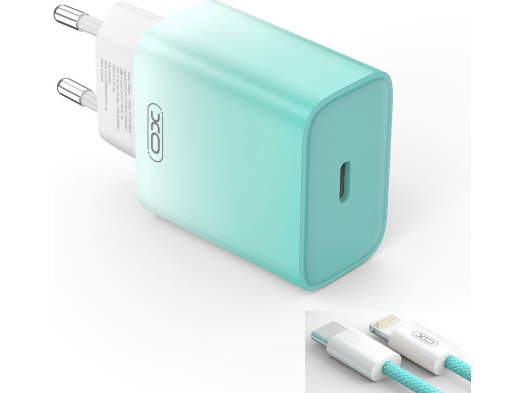 Nabíječka XO CE18 PD 30W 1x USB-C modro-bílá + kabel USB-C - Lightning