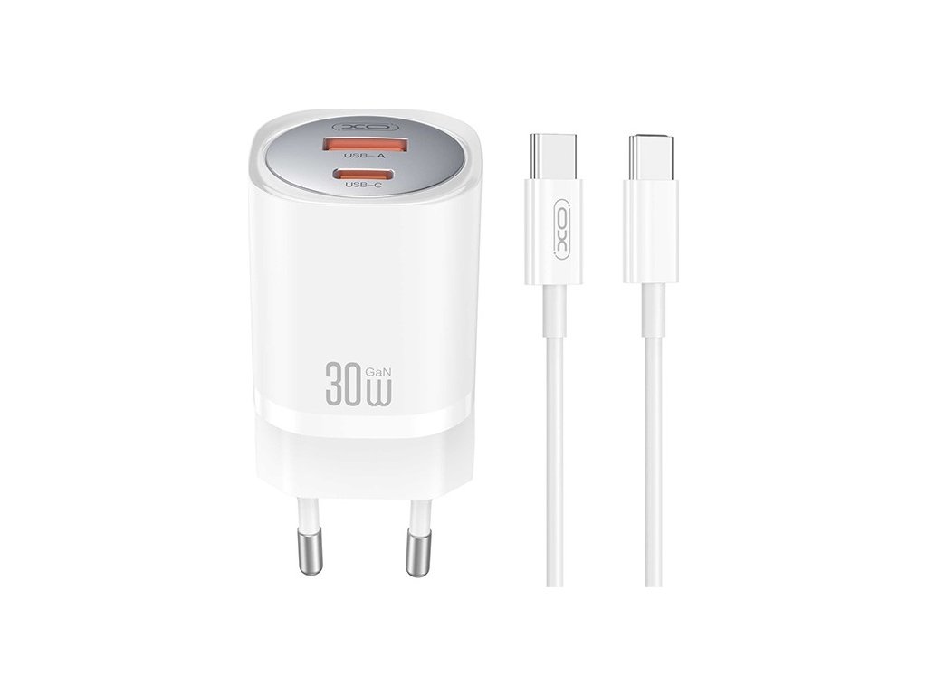 Nabíječka XO CE21 PD 30W 1x USB-C 1x USB bílá + kabel USB-C - USB-C