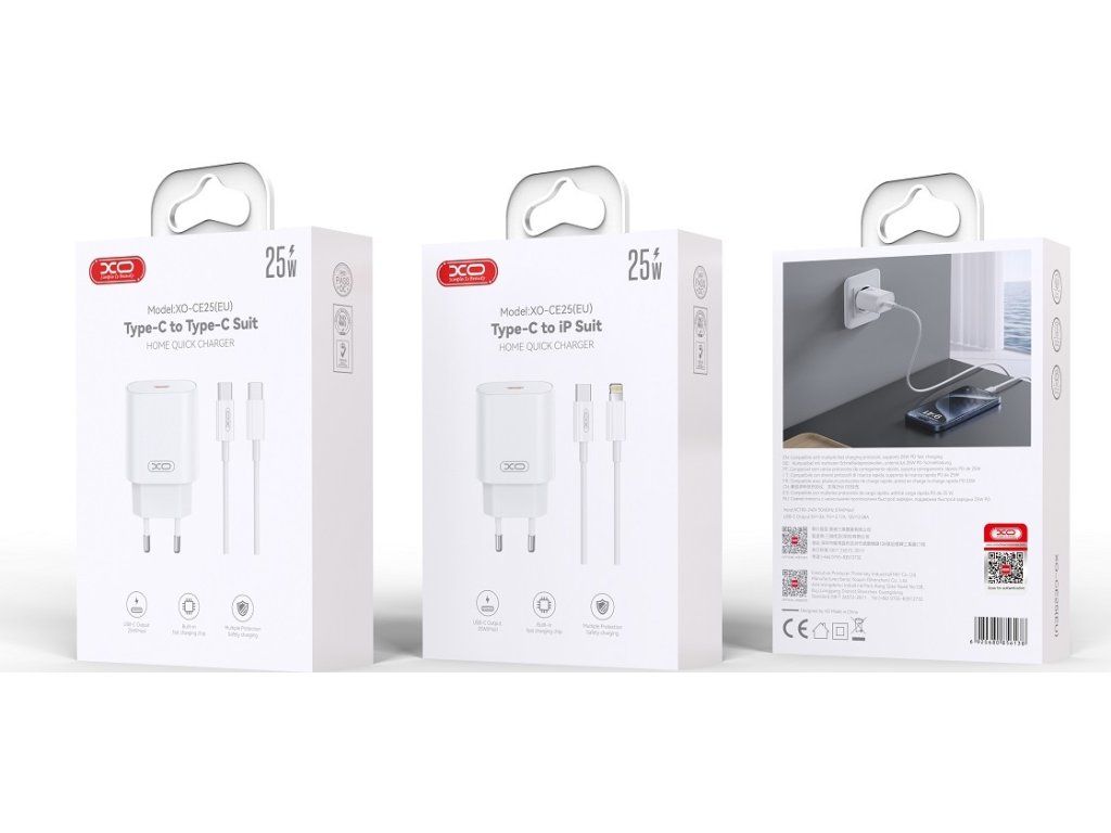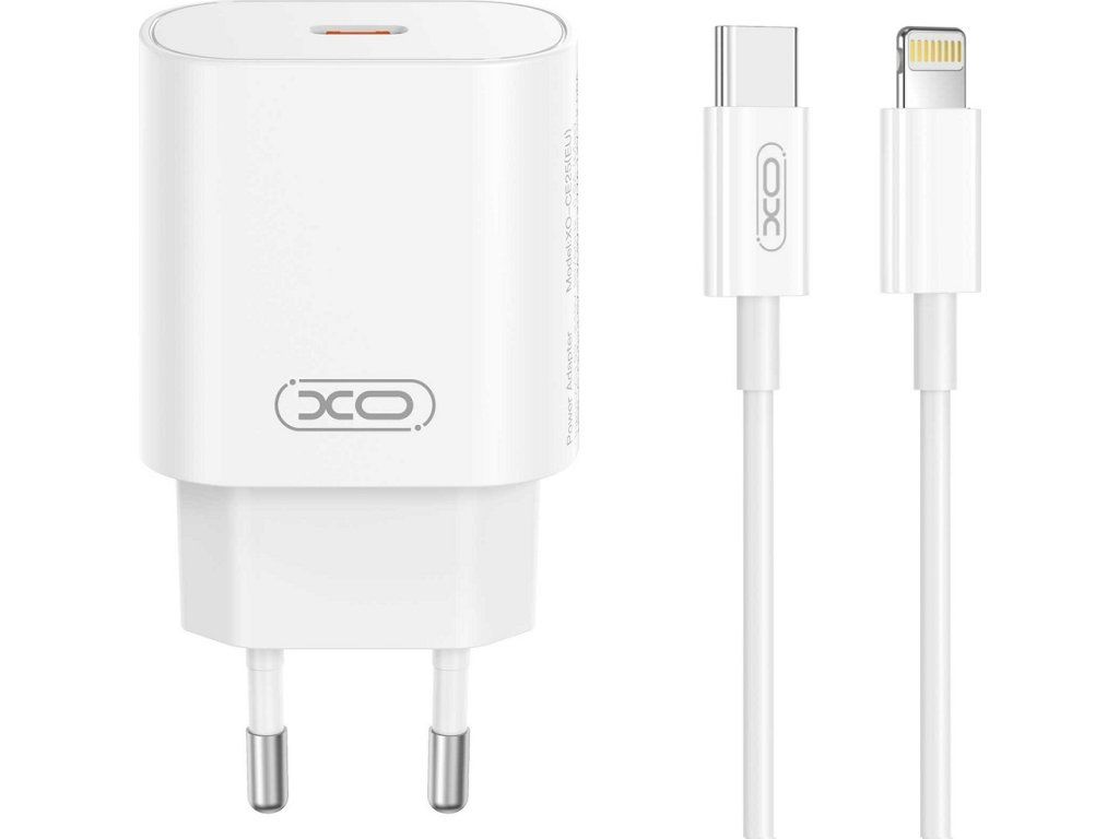 Nabíječka XO CE25 PD 25W 1x USB-C bílá + kabel USB-C - Lightning