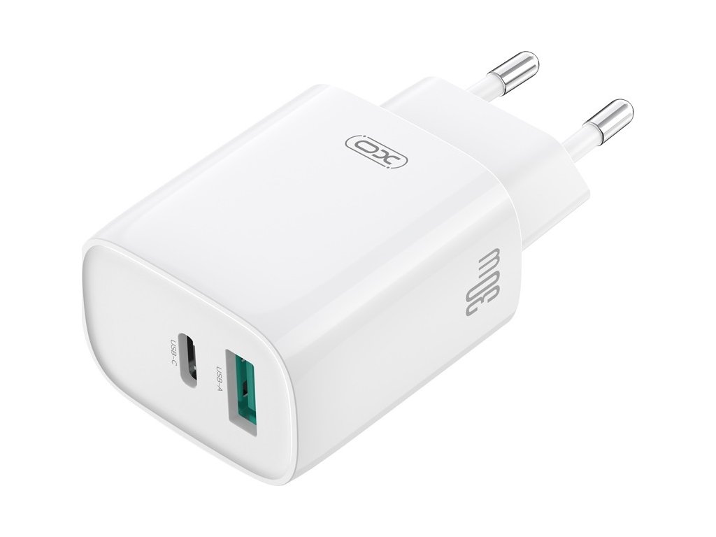 Nabíječka XO CE30 PD 30W 1x USB-C 1x USB bílá + kabel USB-C - USB-C