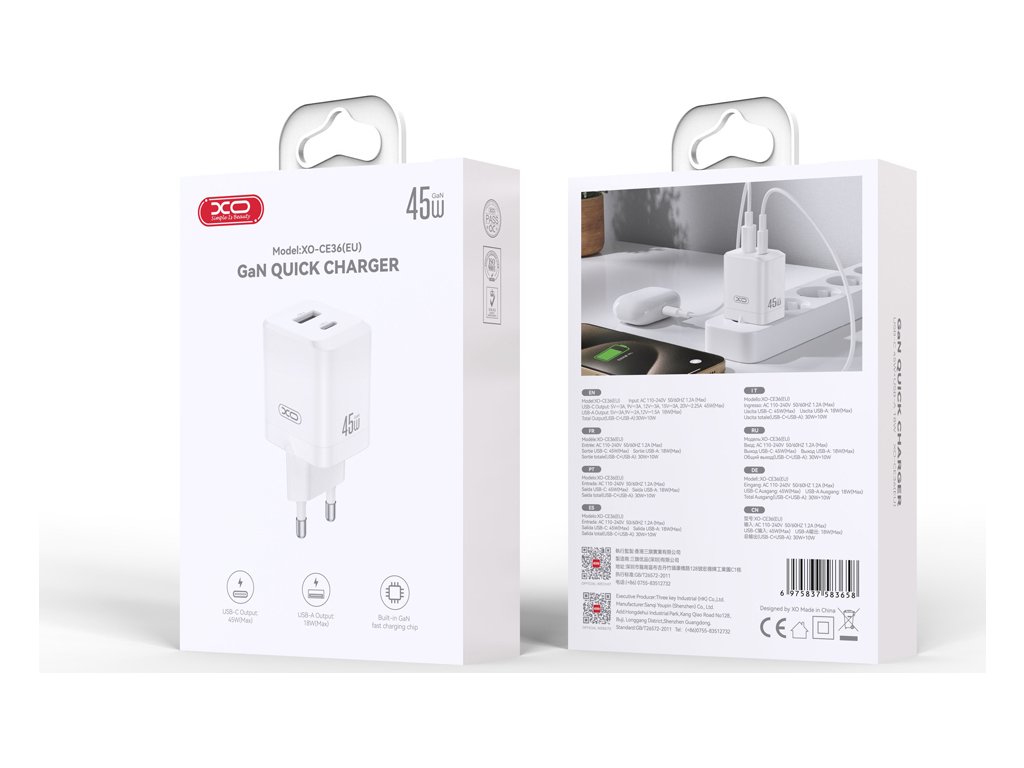 Nabíječka XO CE36 PD 45W 1x USB-C 1x USB bílá