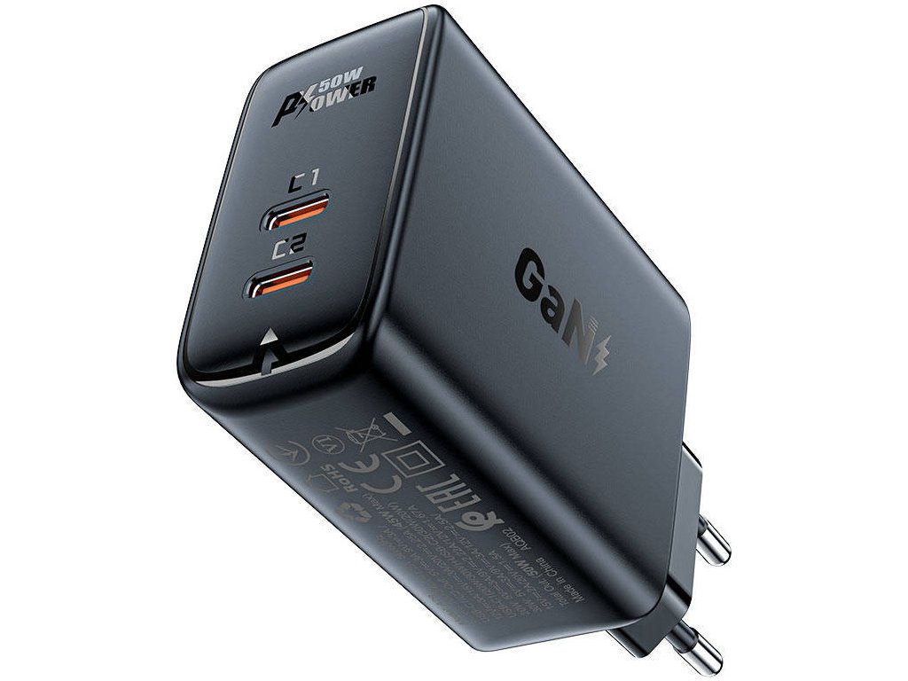 Nástěnná nabíječka Acefast A29 PD50W GAN 2x USB-C 50W (černá)