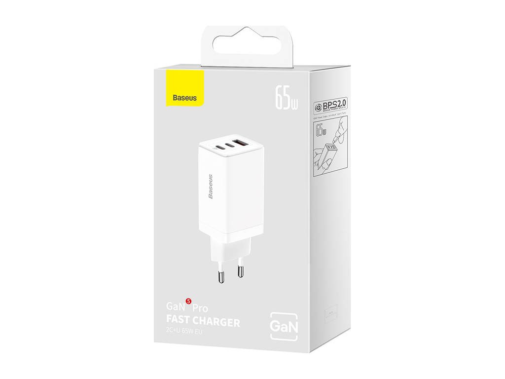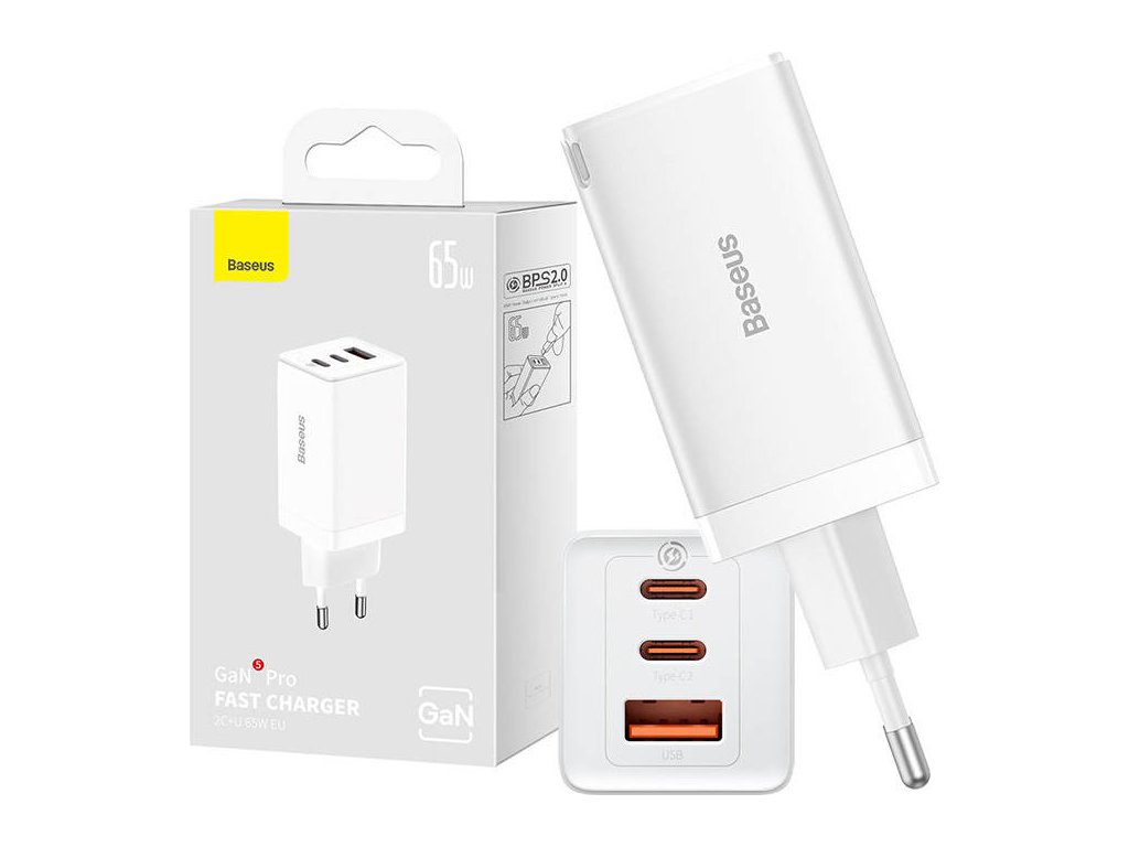 Baseus GaN5 Pro 2xUSB-C + USB síťová nabíječka, 65W (bílá)