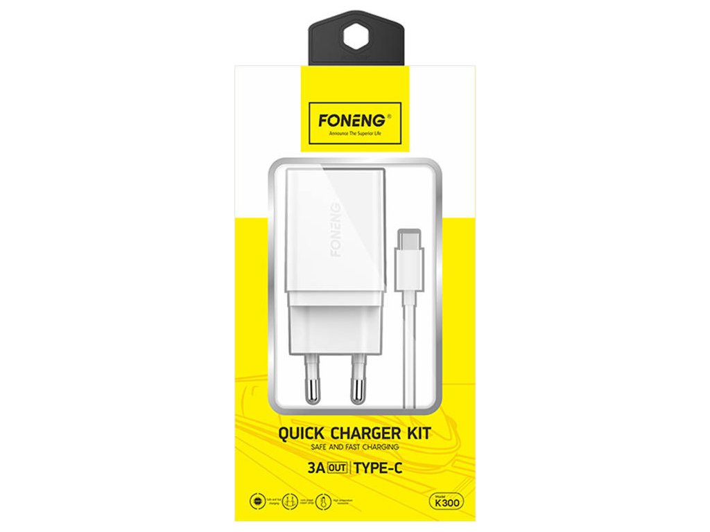 Rychlonabíječka Foneng 1x USB K300 18W + kabel USB na USB-C