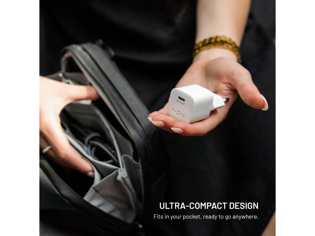 Set miniaturní síťové nabíječky FIXED s výkonem 30 W a přiloženým USB-C kabelem rychle a spolehlivě dobije váš telefon, tablet i další zařízení. Adaptér je vybaven unikátní technologií GaN, která umožňuje zmenšit rozměry nabíječky, a přitom bezpečně a efektivně zachovat vysoký výkon a rychlé nabíjení bez přehřívání. Díky mimořádně kompaktnímu provedení nabíječku snadno zapojíte i na hůře dostupná místa či ji schováte do kapsy nebo kabelky. I přes své minimalistické rozměry poskytuje plnohodnotný výkon a zajišťuje bezpečné nabíjení díky integrované ochraně proti přehřátí, přepětí i zkratu. Součástí balení je také praktický USB-C kabel, takže můžete nabíječku ihned začít používat bez nutnosti dokupovat další příslušenství. S ohledem na životní prostředí je nabíječka vyrobena z recyklovaných materiálů s certifikací GRS a navržena tak, aby splňovala principy udržitelnosti. Díky nabíjecímu adaptéru FIXED se už nebudete muset obávat, že vám dojde energie – ať už jste doma, v kanceláři, nebo na cestách.