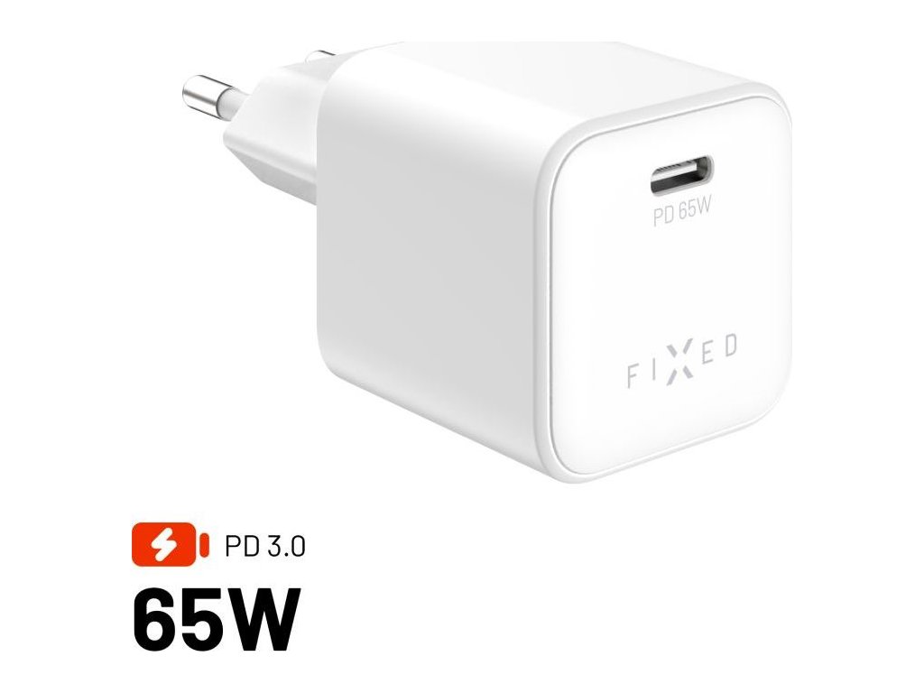 Síťová GaN nabíječka FIXED Mini s USB-C výstupem a podporou PD, 65W, bílá