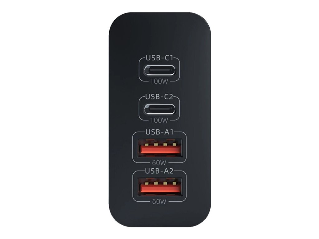 Dva porty USB-C poskytují každý výkon až 100 W, což vám umožní nabíjet notebooky PD, jako jsou MacBooky a ultrabooky se systémem Windows. Porty USB-A nabízejí až 60 wattů - skvěle se hodí pro smartphony, powerbanky nebo přenosné konzole. Bez ohledu na kombinaci nabíječka inteligentně rozděluje energii pro rychlé a bezpečné nabíjení.