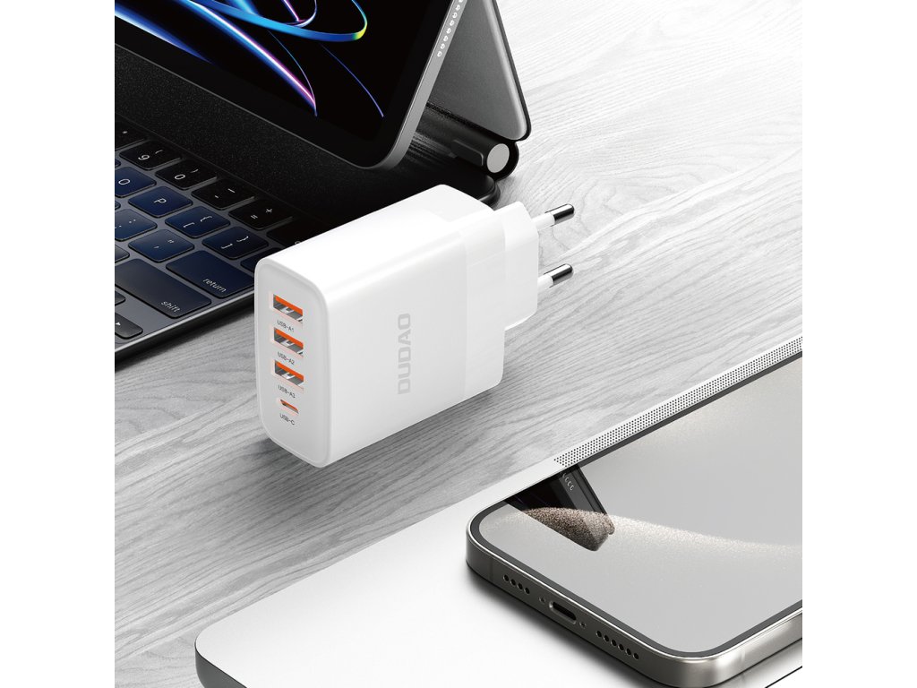 Potřebujete nabíjet několik zařízení najednou? Dudao A5HEU je stvořeno právě pro vás. Tři porty USB-A a jeden port USB-C vám umožní připojit různá zařízení současně. Už si nemusíte vybírat, které zařízení chcete nabít jako první – nyní to můžete udělat všechna najednou.