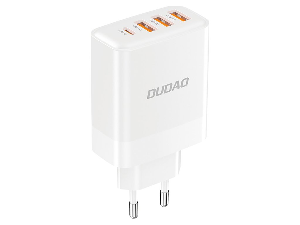 Síťová nabíječka Dudao A5HEU se 3 porty USB-A a 1 portem USB-C s celkovým výkonem až 20 W - bílá