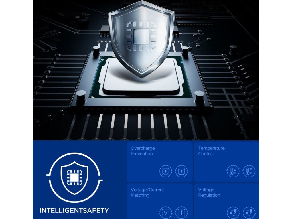 Díky technologii Quantum Boost nabíječka automaticky přizpůsobuje výkon připojenému zařízení, čímž maximalizuje efektivitu a zkracuje dobu nabíjení. Vestavěné funkce prevence přebíjení, vyrovnávání napětí a regulace napětí chrání zařízení před přebíjením, kolísáním napětí a nadměrným proudem, čímž zajišťují bezpečné a stabilní nabíjení za všech podmínek.