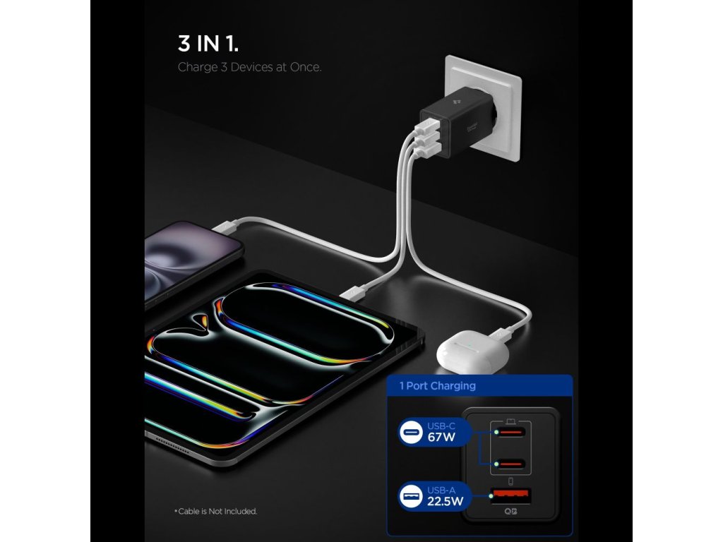 SPIGEN ESSENTIAL EE673EU 3-PORT NETWORK CHARGER 67W BLACK