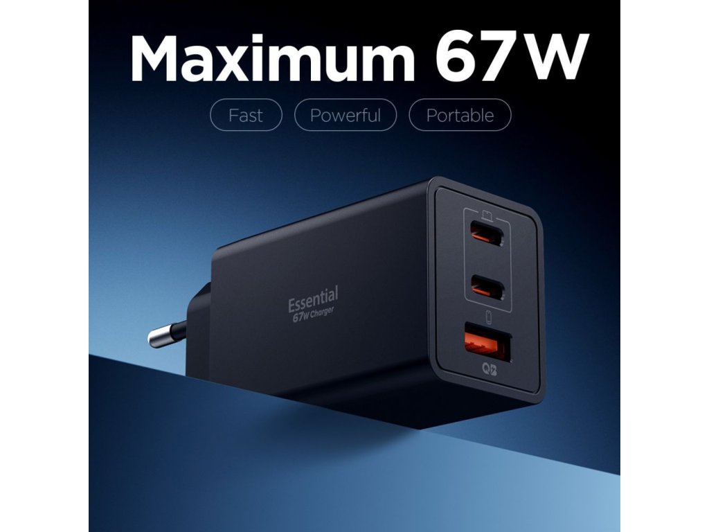 - Výstupní parametry: USB-C1/2: 5V/3A, 9V/3A, 12V/3A, 15V/3A, 20V/3,35A PPS 3,3V-20,3V/3,3A 67W Max.