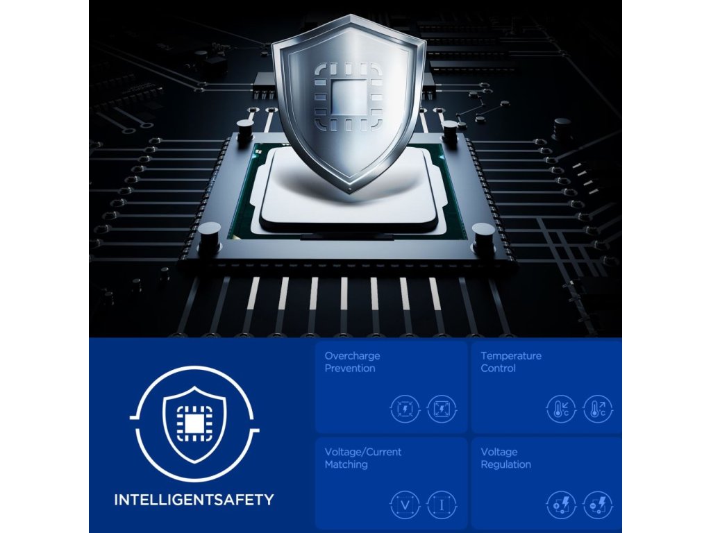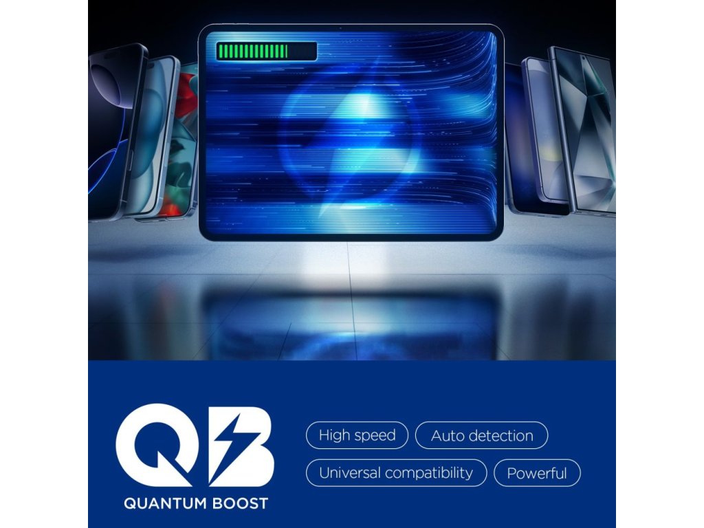Technologie Quantum Boost automaticky upravuje nabíjecí výkon tak, aby odpovídal připojeným zařízením, a zajišťuje tak rychlé a optimální nabíjení bez ztrát. Vestavěné funkce prevence přebíjení, vyrovnávání napětí a regulace napětí chrání zařízení před přebíjením, kolísáním napětí a nadměrným proudem, čímž zajišťují bezpečné a stabilní nabíjení za všech podmínek.