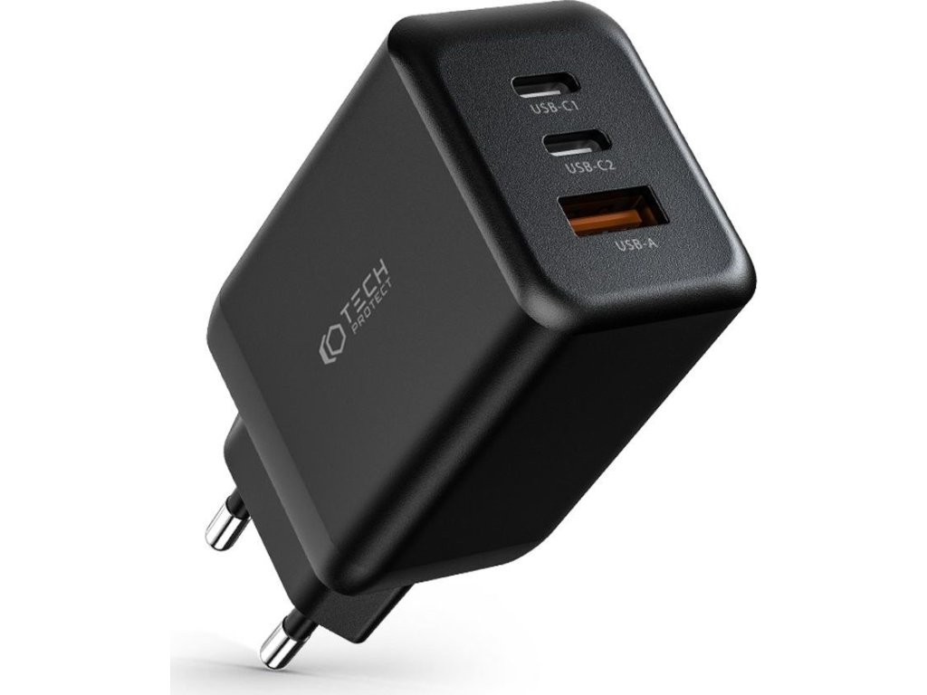 TECH-PROTECT C65W-2 3-PORT NETWORK CHARGER PD65W/QC3.0 BLACK