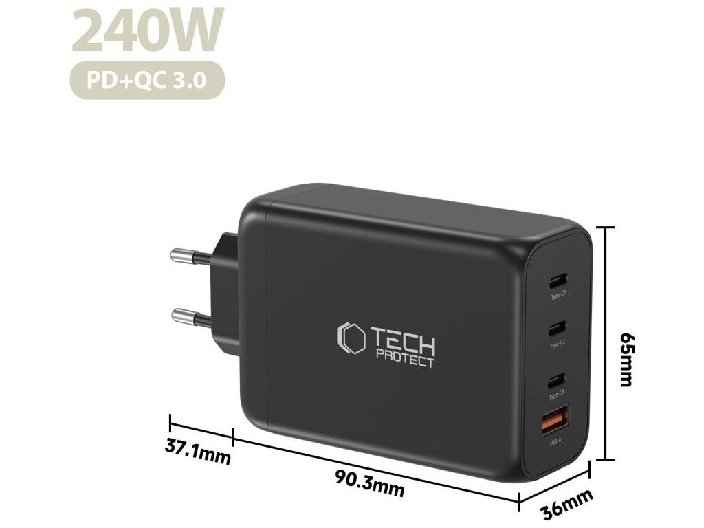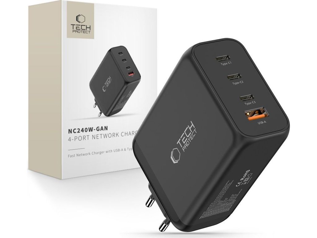 TECH-PROTECT NC240W-GAN 4-PORT NETWORK CHARGER PD 240W / QC3.0 BLACK