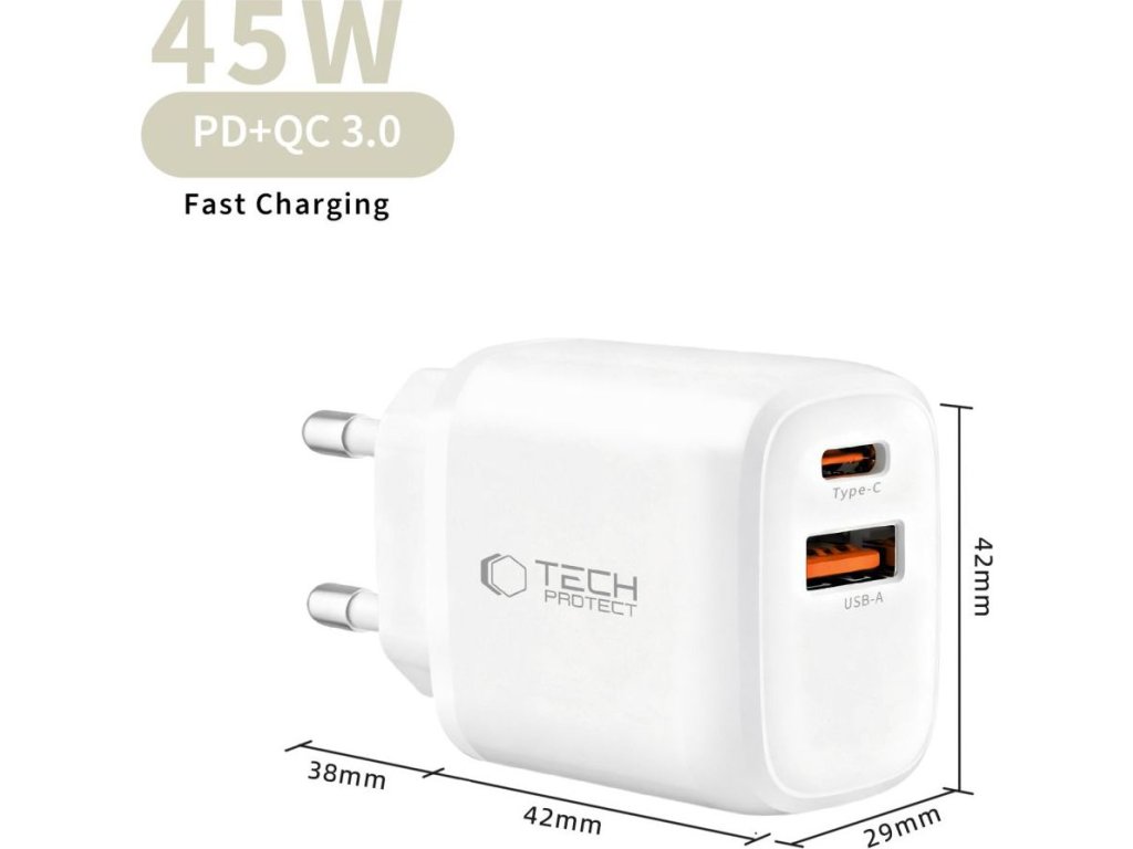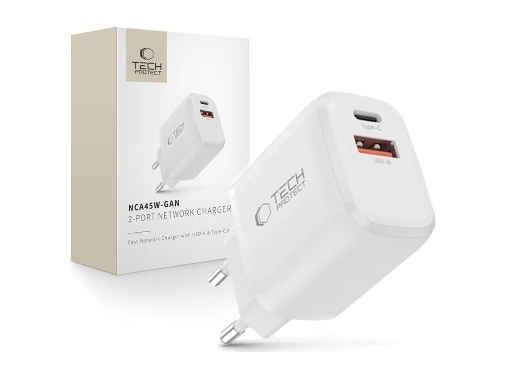 TECH-PROTECT NCA45W-GAN 2-PORT NETWORK CHARGER PD 45W / QC3.0 WHITE