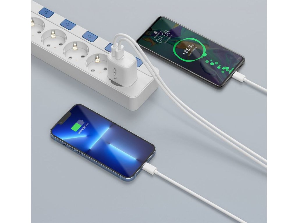 Dudao A26TCEU PD QC 25W GaN USB-A USB-C nástěnná nabíječka s kabelem USB-C - bílá Síťová nabíječka Dudao A26TCEU je moderní a funkční řešení pro rychlé nabíjení mobilních zařízení doma, v kanceláři i…