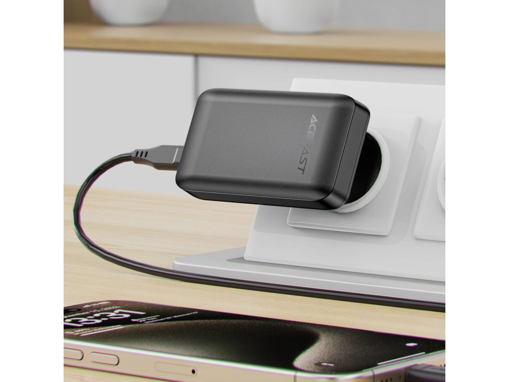 Mini nabíječka do zásuvky Acefast A77 s technologií GaN, výkon 30 W, technologie Power Delivery - černá Síťová nabíječka Acefast A77 poskytuje nabíjení s výkonem až 30 W.