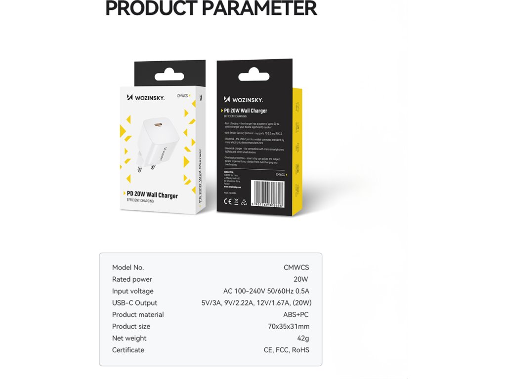 Wozinsky CMWCS USB-C PD 20W nabíječka do zásuvky - bílá