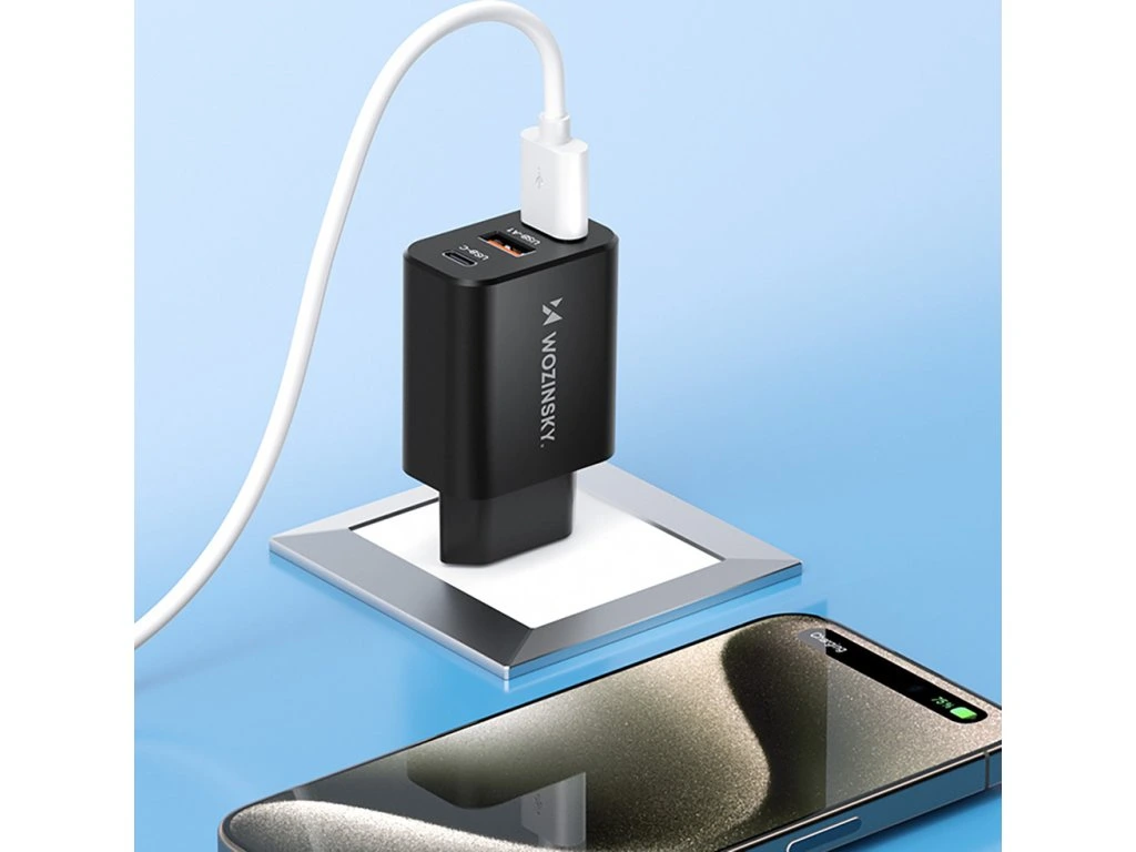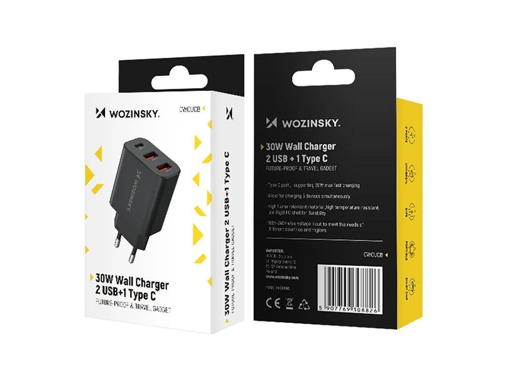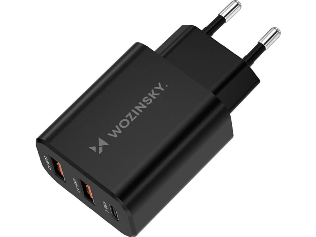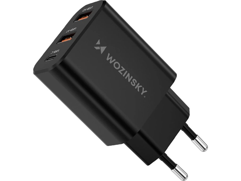 Wozinsky CWCUCB 30W USB-C / 2 x USB-A nástěnná nabíječka - černá